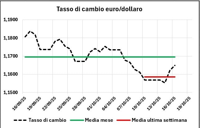 EVOLUZIONE DELLE QUOTAZIONI DEL GREGGIO E DEL CAMBIO NEL 2025 FINO AL 17/10